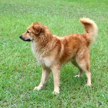 Enya is our lovable 3 year old UKC Champion who made the UKC Top-10 Chinook list in 2020. Enya has excellent and diverse genetics. She is a well-proportioned, very healthy and active Chinook. She is super smart, loves to play and is extremely friendly. Enya is a smaller-sized Chinook while Ooli is a very large stud; Because of the size difference we decided to do a side-by-side breeding at the University of Florida.